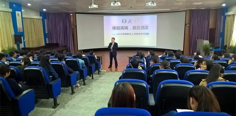 为了提高公司老员工对专业学习的兴趣和职业规划能力,10月17日上午10:00和下午14:00,谈球吧合作单位上海亚湾酒店管理有限公司总经理王信洋、经理郑晓芸分别给2016级新生和2015级、2014级旅游管理专业老生做了两场报告。